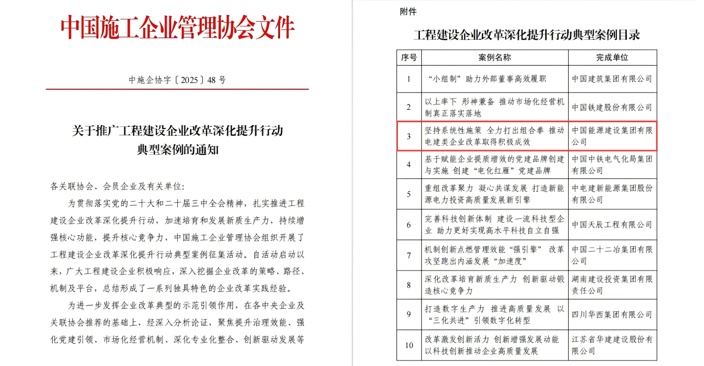 中國能建電建企業改革案例獲評工程建設企業改革深化提升行動典型案例